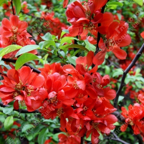 Карликовая, стелящаяся крона листопадного кустарника вырастает в ширину и в высоту до 1 м. На хорошо разветвленных, колючих, горизонтальных стеблях очередно расположены блестящие, плотные, темно-зеленые листья. Осенью окраска багряная. В апреле-мае ветки по всей длине покрываются одиночными полумахровыми цветками , ярко красными лепестками. В центре бутона заметны желтые тычинки. В сентябре появляются округлые плоды.
