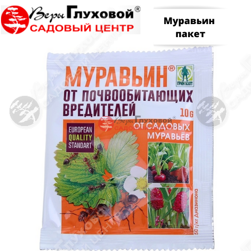 Тот же порошок «Муравьин» для борьбы с садовыми муравьями, только в меньшей таре. Расфасован небольшими пакетами весом по 50 грамм. Методика применения та же, что и у Муравьина в тубах.