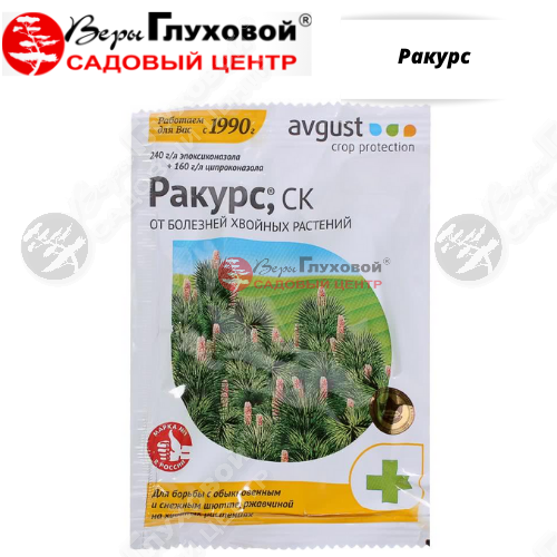 Средство от болезней «Ракурс» предназначено для профилактической и лечебной обработки растений в период вегетации. Используется для хвойных и лиственных пород деревьев и травянистых многолетников. Эффективно против снежного и обыкновенного шютте, ржавчины и мучнистой росы. Из препарата готовят раствор для опрыскивания.